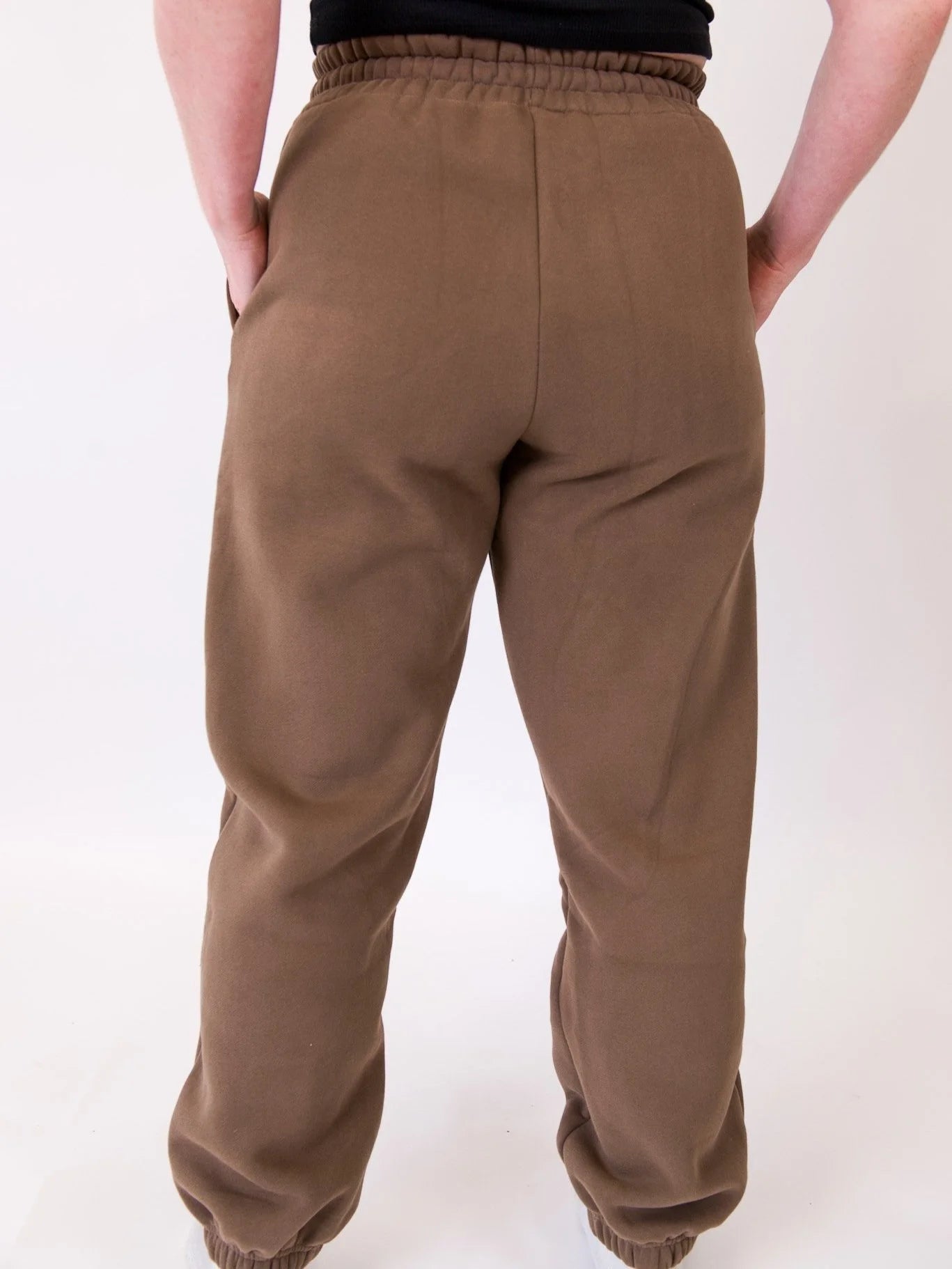 Brown sweat pants with light brown thread embroidered logo